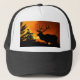 Ein Elch steht auf einem Hügel, während ein Laubbrand hinter ihm wütet. Seine Silhouette sticht scharf gegen das Feuer im Hintergrund hervor. Computerkunst von Kathie Miller.