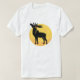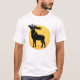 Eine minimalistische Darstellung eines majestätischen Elchs, der gegen einen Vollmond silhouiert wurde.