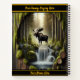 Ein atemberaubender Elch liegt in der Nähe eines ruhigen Wasserfalls, umgeben von üppiger Vegetation und hohen Bäumen in einem friedlichen Waldgebiet. HINWEIS zum Ändern von Text- oder Grenzfarben mithilfe des Entwurfstools Bearbeiten