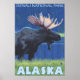 Elche bei Nacht - Denali Nat'l Park, Alaska - Vintage Travel Poster wurde im Jahr 2007 gegründet. Dieses Bild zeigt Szenen aus Denali Nat'l Park, AK.