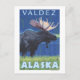 Elche bei Nacht - Valdez, Alaska - Vintage Travel Poster wurde im Jahr 2007 gegründet. Dieses Bild zeigt Szenen aus Valdez, AK.