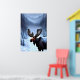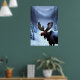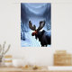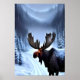 Es ist Winter und der Elch läuft im Schnee mit dem Baum im Wald im Hintergrund. Das ist eine künstlerische KI.