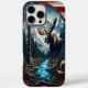 Ein majestätischer BullenElch steht hoch vor einem schneebedeckten Berggipfel mit einer durch das Tal fließenden Bucht. Eine amerikanische Flagge weht stolz in der Ferne, gerahmt durch eine Holzflagge