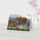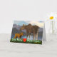 Ein Mutterelch und ihr niedliches Kalb mit einem See und Berge im Abstand. Der Slogan "kalte warme Herzen der Nasen-(rotes Herz A)" erscheint auch. Kundengerechtes Textinnere liest "glücklichen bemutternsonntag!"