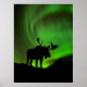 Elche mit grüner Aurora Borealis, Alaska Poster