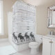 Ein rustikaler Grauholz-Seidenspulenduschvorhang mit einer sich wandelnden Elch-Silhouette. Ideal für Zuhause-Badezimmerdekoration oder rustikale Kabinendekoration.