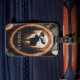 Ein Holzschild, das aus einem Baumstamm geschnitzt wurde, weist eine Silhouette eines Elchs in einer Waldlandschaft auf. Der Name Thomas steht unter dem Elch.
