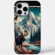 Ein majestätischer BullenElch steht neben einem mächtigen Baum und blickt auf die majestätischen schneebedeckten Gipfel, die sich im gewundenen Fluss unten widerspiegeln.