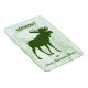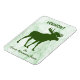 Dieser Magnet hat eine Silhouette eines Elchs vor einem abstrakten Hintergrund mit den Worten Vermont, der Staat des Grünen Berges.