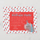 Ein niedlicher Elefant, bereit, Ihren besonderen Tag zu feiern, mit Party Hut und Kerze auf einem Hintergrund und Punkten. Benötigen Sie ein anderes Farbschema? Schreib uns einfach und frag.