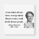 "Große Köpfe diskutieren Ideen; durchschnittliche Köpfe diskutieren Ereignisse; Kleine diskutieren Menschen." - Eleanor Roosevelt