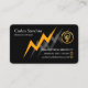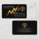 At the top left corner lies your prestigious name and job title. In the opposite direction is a gold "home bulb repair tools" logo you can use. Directly underneath is the business name with the card details in the gold power plug buttons.