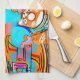 Electric Orange & Cyan Dreams — Abstraktes Design Geschirrtuch