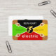 At its center point is a gold lightning bolt logo you can use. At the top sits your prestigious name with the oversize business name "electric" near the base of the card. Towards the left and right sides of the card are two slogan captions which can advertise your business. You can change these captions and the business name to suit your own service needs.