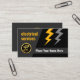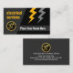 A grey trapezium on the left houses your business name "electrical services" alongside a gold letter-e home electrician logo you can use. You can change the business name to suit your own service needs. Your prestigious name is located directly underneath a pair of lightnings.