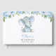 Fügen Sie Ihrer Geburtstagsfeier eine persönliche Touch mit diesen stilvollen und unvergesslichen Party hinzu! Das Design ist mit blauen Aquarellfarben-Blume (Rose und Torfbäume), grünen Blätter und kleinen Elefanten auf weißem Hintergrund gestaltet.