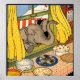 Elefant, der durch das Fenster den Kopf stößt Poster