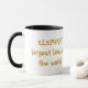 Eine 11 Unze-Tasse mit einem farbenreichen Bild eines Elefanten auf ihm.