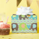 Elefanten des Braunem, Limonem und Aquablaus mit Orangen- und Aquaherzen bei einem Zickzack gestreiften Hintergrund, einem niedlichen, Spaßverpackungspapier perfekt für Geburtstage oder anderen Gelegenheiten!