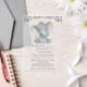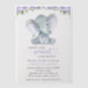 Feiern Sie mit dieser stilvollen Babydusche die bevorstehende Ankunft Ihres Freudenbündels. Das Design zeichnet sich durch lila Aquarellfarben-Blume (Rose und Pfannkuchen), grüne Blätter und kleinen Elefanten aus.