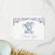 Fügen Sie Ihrer Babydusche mit diesen stilvollen und unvergesslichen Party eine persönliche Touch hinzu! Das Design zeichnet sich durch lila Aquarellfarben-Blume (Rose und Pioniere), grüne Blätter und kleine Elefanten auf weißem Hintergrund aus.