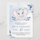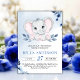 Elefant mit Blue Anemones Wasserfarben Babydusche Einladung