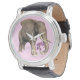 Uhr, Klassische Damenuhr mit schwarzen Lederarmband