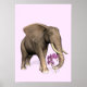 Elefant mit rosa Orchid Poster