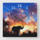 Elefant-Silhouette-Quadrat-Uhr Quadratische Wanduhr