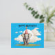 Dies ist ein von der KI generiertes Design. Ich wollte einen Elefanten mit einem Geburtstagshut auf einem Grasland, und das ist es, was ich got habe. Ich dachte, ein hellblauer Hintergrund für den Elefanten würde gut aussehen. Auf der Rückseite habe ich den Text Delivered von:, Senden an:
