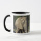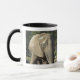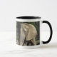 Eine 11 Unze-Tasse mit dem Bild eines Elefanten, der in der Morgensonne weiden lässt.