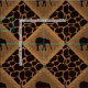 Die Abwechslung quadriert Set auf einer Diagonale eines tiefen schokoladenbraunen Elefant-Sets in einer Beschaffenheits-Diamantform des Medium-braunen Imitats grasartigen, die im Muster der hohen Blätter des Grases eingefaßt wird. Wechselndes Muster mit einem Dunkelschokolade Braun (fast Schwarzes) und Tierdruckhintergrund der tan Giraffe.