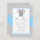 Elefant-Zickzack hellblaue graue Baby-Dusche Einladung