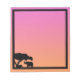 5,5" x 6" Notizblock mit einem Bild von Silhouetten von zwei afrikanischen Elefanten und einem Baum bei Sonnenuntergang mit schwarzer Grenze. Siehe die gesamte Safari Notepad-Auflistung in den SONDERN-TOUCHS | Abschnitt Gastgeschenke.