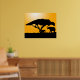Poster mit einem Bild von Silhouetten von zwei afrikanischen Elefanten und einem Baum bei Sonnenuntergang. Siehe dazu passender Leinendruck. Die gesamte Safari-Poster-Sammlung im DÉCOR | Posters & Canvas Prints Sektion.