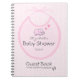 Modernes schickes "Babyparty-Gast-Buch". Niedlicher rosa Babyschellfisch, mit Mama und Babyelefanten. Weiß mit Rosa punktierte Hintergrund- und Babyabdrücke. Dieser "BabypartyGuestbook" ist ein geschätztes Andenken für Mama-zusein. Lassen Sie Ihre Gäste etwas, das in dieses entzückende Babyduschen-Gastbuch, Notizbuch schreiben speziell ist. Behalten Sie Duschengeschenke im Auge! Personifizieren Sie zum Anzug Ihren Bedarf. Vervollkommnen Sie für eine Mama, die ein Mädchen erwartet und ein modernes Chic oder einen Elefanten hat, die themenorientiert sind, Babyparty. Um zusammenpassende Produkte, wie Einladungen und Aufkleber oder andere Farben-Bitte zu sehen besichtigen Sie meinen Speicher "die Hungarican Prinzessin" bei www.zazzle.com/hungaricanprincess*. Schauen Sie in meiner "oh Baby" Kategorienabteilung. Glückwünsche!.