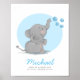 Dekorieren Sie Ihr kleines Babyzimmer mit diesem wunderschönen handgezeichneten blauen Babyelefant dummen Blasen personalisiert mit Namen, Geburtsdatum und Babygewicht.