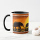 Diese Elefantenfamilie, die gegen die untergehende Sonne silhouettiert ist, ist ein großartiges Panorama-Tasse-Design für jeden Pachoderm-Kenner, Elefanten-Liebhaber...oder Tierliebhaber, die auch Lieben Kaffee!! Machen Sie sie lächeln, und weiterhin lächeln, jedes Mal, wenn sie eine weitere Tasse Java!