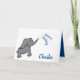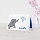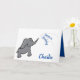 Glückliche 1. Geburtstagskarte Elefanten in Blau und Weiß. Die Außenseite der Karte zeigt ein Bild eines illustrierten Elefanten, der bei Feiern Wasser bläst. Der angezeigte Text enthält Platz für den Namen des Babys, und die innere Meldung kann personalisiert sein. Eine niedliche Karte für einen Großeltern, der seinen Enkel oder eine Mutter oder einen Vater seinem Sohn zum ersten Geburtstag schenkt.
