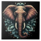 Ein aufwändig entworfener Elefant steht majestätisch, mit schönen Blumenmustern geschmückt. Das sanfte Licht der Dämmerung verstärkt seine Eleganz, symbolisiert Kraft und Schönheit in der Natur.
