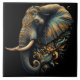 Ein aufwändig entworfener Elefant steht majestätisch, mit schönen Blumenmustern geschmückt. Das sanfte Licht der Dämmerung verstärkt seine Eleganz, symbolisiert Kraft und Schönheit in der Natur.