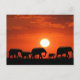 Eine Familie der Elefanten fahren mit ihrem immer währenden Trek als die Sonne-Sets hinter ihnen fort. Ihre Silhouetten stehen heraus gegen die ausgezeichneten Farben des Himmels. Computerkunst durch Kathie Miller.