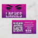 Mit dieser kühlen Glitzer Ombre Lash Business Card stärken Sie Ihr Markenimage und eignen sich somit hervorragend für Künstler aus aller Welt. Dieses Design zeichnet sich durch einen atemberaubenden, rosa bis tief lila Glitzer-Farbverlauf aus, der durch fette, detaillierte Lash-Illustrationen und das Wort "LASHES" in großen, eleganten Schriften betont wird. Die Integration eines scannbaren QR-Codes macht diese Visitenkarte modern und funktionell, sodass Kunden sofort auf Ihre Buchungsseite, Social Media oder Website zugreifen können. Dieses Design gleicht trendige Ästhetik mit beruflicher Einfachheit perfekt aus und ist somit die ideale Wahl für alle, die ein unvergessliches Branding-Tool suchen. Diese Visitenkarte ist auf der Rückseite individuell anpassbar und eignet sich hervorragend als Networking-Accessoire für lash extension-Spezialisten, Freelance-Makeup-Künstler oder Beauty-Salon-Unternehmen. Verlass einen bleibenden Eindruck mit einer Karte, die so kühn und blendend ist wie Ihr Service.