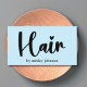 Moderne, vollständig anpassbare Visitenkartenvorlage mit fett formatierten Schriftart und blauem Hintergrund. Ideal für Friseur, Friseur.