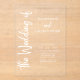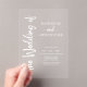 Die unverwechselbare elegante, weiße Schriftzeichen-Einladung auf Clear-Acrylic zeigt exquisite vertikale Skriptkalligraphie gepaart mit zeitgenössischer Typografie. Es ist vollständig anpassbar, sodass die Namen des Paares und die Einzelheiten der Hochzeit berücksichtigt werden können. Das klassische und zeitlose Schwarz-Weiß-Thema macht es zu einer idealen Wahl für Hochzeiten zu jeder Jahreszeit. Dieses Produkt ist Teil der Elegant Schwarz-weiß Vertical Script Wedding Suite.