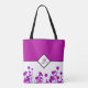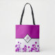 ** Elegance Blooms: Personalisierte Monogramm-Tasche ** Drehen Sie Kopf mit diesem atemberaubenden Tote-Tasche, eine bezaubernde Mischung aus Glamour und modernem Chic. Die in einem luxuriösen mittel violett-roten Rosa gefertigte Tasche zeichnet sich durch ein raffiniertes schwarzes Linien-Detail aus, das in einem eleganten Diamanten in der Mitte endet. Ihre personalisierten Monogramm-Initialen, die wunderschön in einer Schrift- und Serifenkombination verstrickt sind, nehmen die Bühne im Zentrum und fügen eine Touch von einzigartiger Eleganz hinzu. Die obere Hälfte der Tasche ist eine faszinierende Weite eines reichen mittel violett roten rosa, während die untere Hälfte einen zauberhaften Blumentanz in Rosa-Tönen vor einem knusprigen weißen Hintergrund. Ein Muss Accessoire, um Ihren exquisiten Stil widerzuspiegeln.