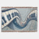 Elegance in piano keys and blossoms. The keys are in classic black and white and curve elegantly, twisting and intertwining in an artful manner to create a dynamic and visually appealing composition. These curved lines add vibrant movement and a touch of sophistication to the image. A bright, glossy bluish element runs alongside the keys, parallel to the keyboard. This element adds depth and dimension to the design, providing a modern contrast to the classic keys.