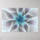 Elegance Modernes Blue Grau Weiß Fraktal Blume Poster