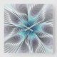Elegance Modernes Blue Grau Weiß Fraktal Blume Quadratische Wanduhr