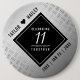 Feiern Sie mit diesem stilvollen Knopf das 11. Stahlfest! Elegante Schwarz-Weiß-Schriftzüge auf einem rautenbeschichteten, abgenutzten Stahlhintergrund verleihen diesem besondere Anlass und Meilenstein eine unvergessliche Touch. Personalisieren Sie die Namen und Daten der Ehe des Paares. Design © W.H. Sim. Weitere Informationen unter zazzle.com/expressionsoccasions
